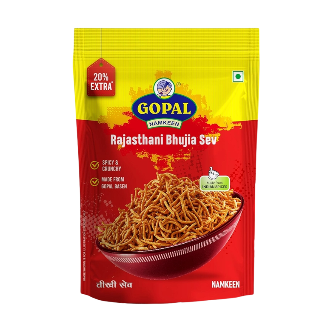 Gopal Rajasthani Bhujia Sev 300GM is a spicy and crispy namkeen made with gram flour and traditional Rajasthani spices. Known for its bold flavour and crunchy texture, it pairs perfectly with tea or can be used in chaats. Fresh and hygienically packed for UAE customers.