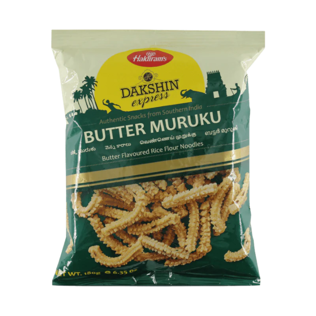 Haldiram’s Butter Murukku 180gm is a traditional South Indian-style snack made with rice flour and butter for a light, crispy texture and rich flavour. Perfect for tea-time snacking, it offers a delicious melt-in-the-mouth crunch.