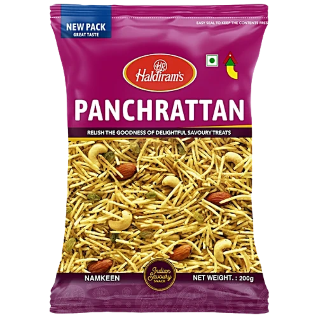 Haldiram’s Panchrattan is a crunchy, mixed snack made with a delicious blend of lentils, nuts, and spices.