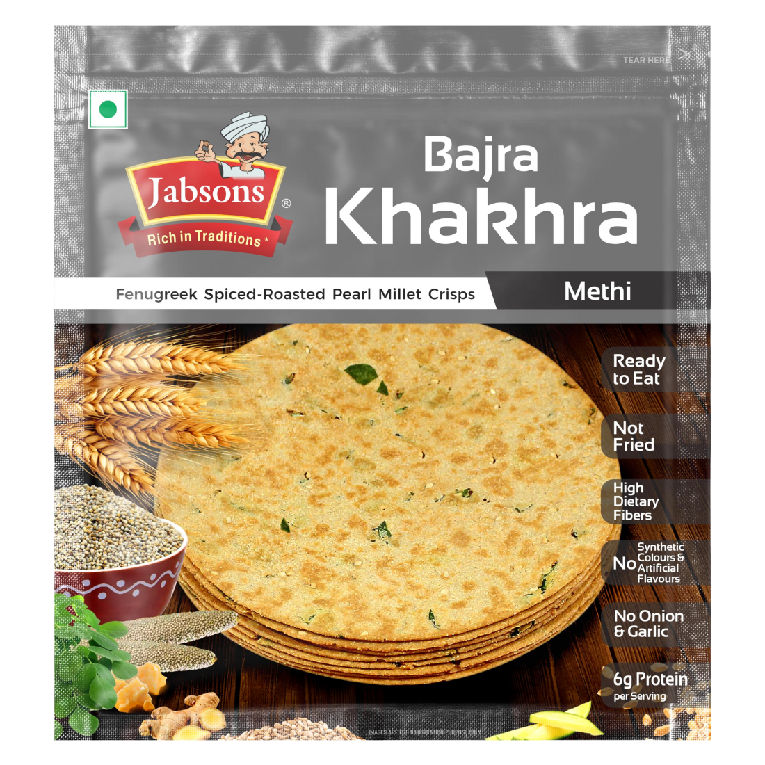 Jabsons Bajra Methi Khakhra 180GM offers a healthy, crispy snack made from bajra and aromatic fenugreek. Perfect for tea-time, breakfast, or travel, it delivers a wholesome, traditional taste loved in UAE households for daily snacking.