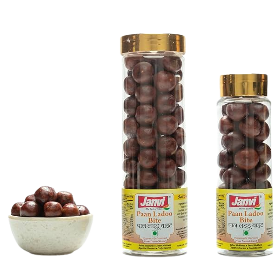 Janvi Paan Ladoo Bite is a rich, sweet paan-flavored treat crafted with traditional ingredients. These bite-sized ladoos offer a refreshing mouth freshener experience with a delightful paan aroma. The 150g pack is perfect for after-meal enjoyment and is highly preferred by UAE customers looking for premium paan-based sweets.