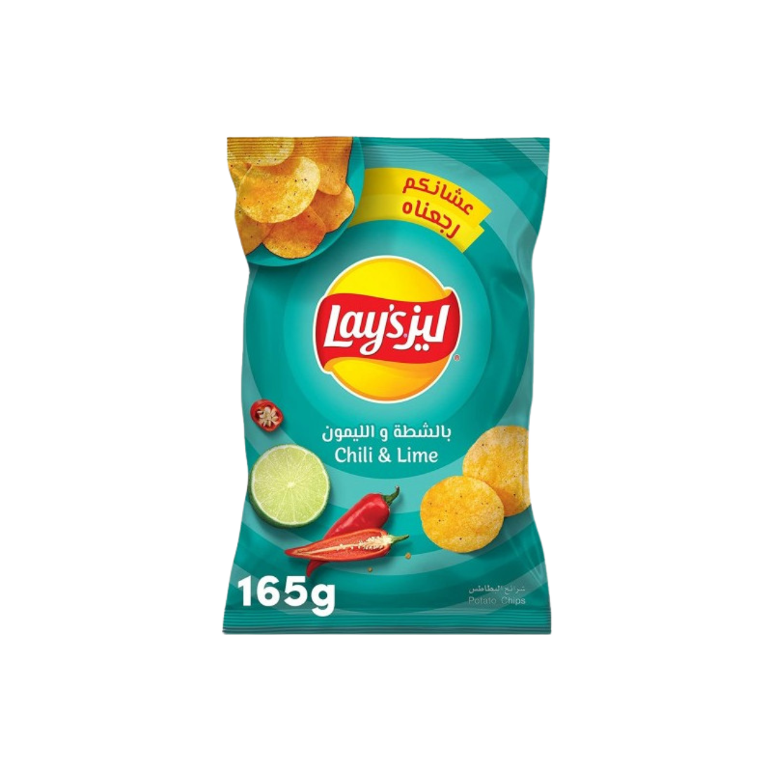 Lays Chili Potato Chips 165GM are thin, crispy potato chips with bold chili flavor. Perfect for snacking, parties, or on-the-go munching, they deliver spicy taste and satisfying crunch for UAE households.