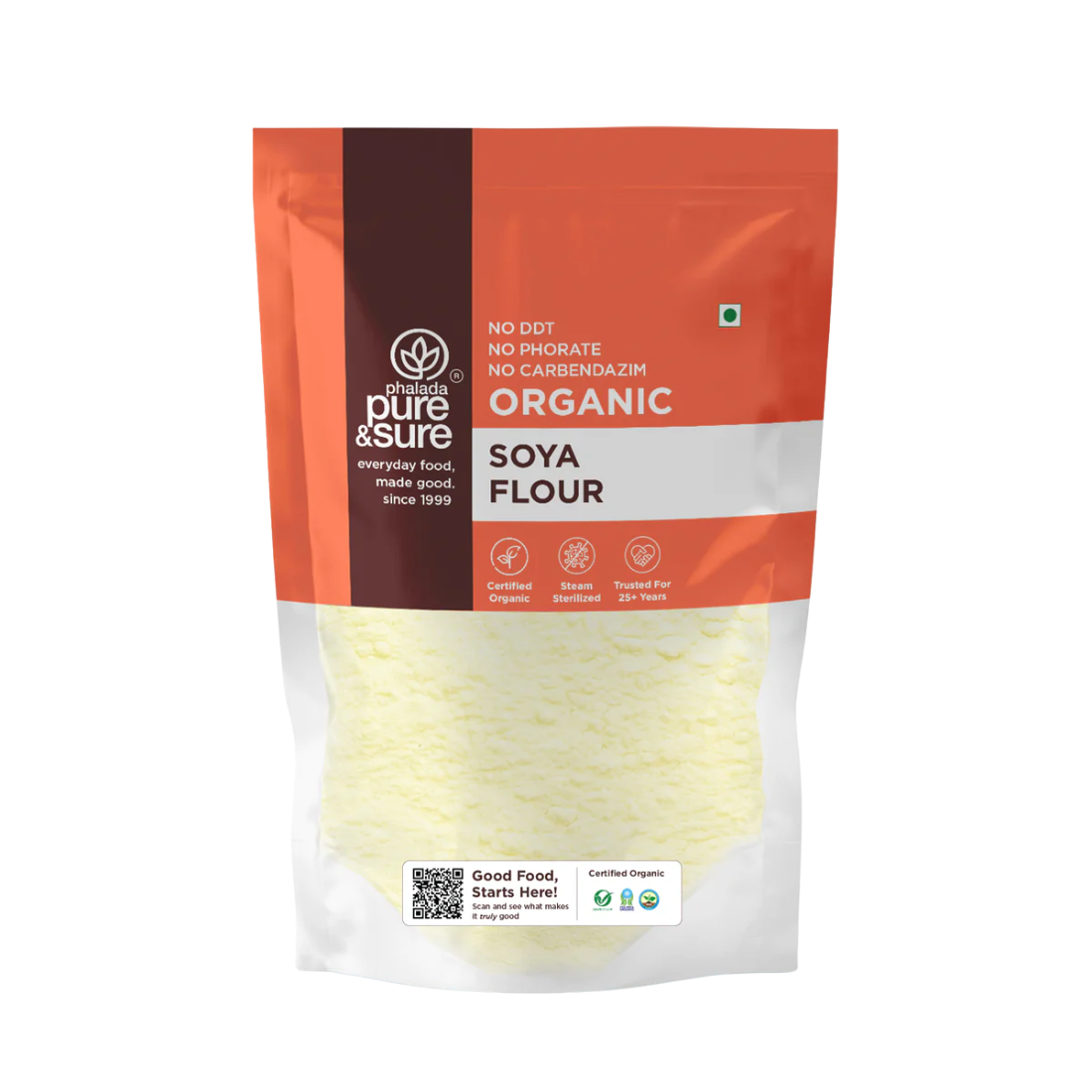 Pure & Sure Organic Soya Flour 1KG is a high-protein, nutrient-rich flour made from 100% certified organic soybeans. Ideal for baking, rotis, and healthy cooking, it enhances texture and nutrition. A clean, wholesome choice for health-focused UAE household.