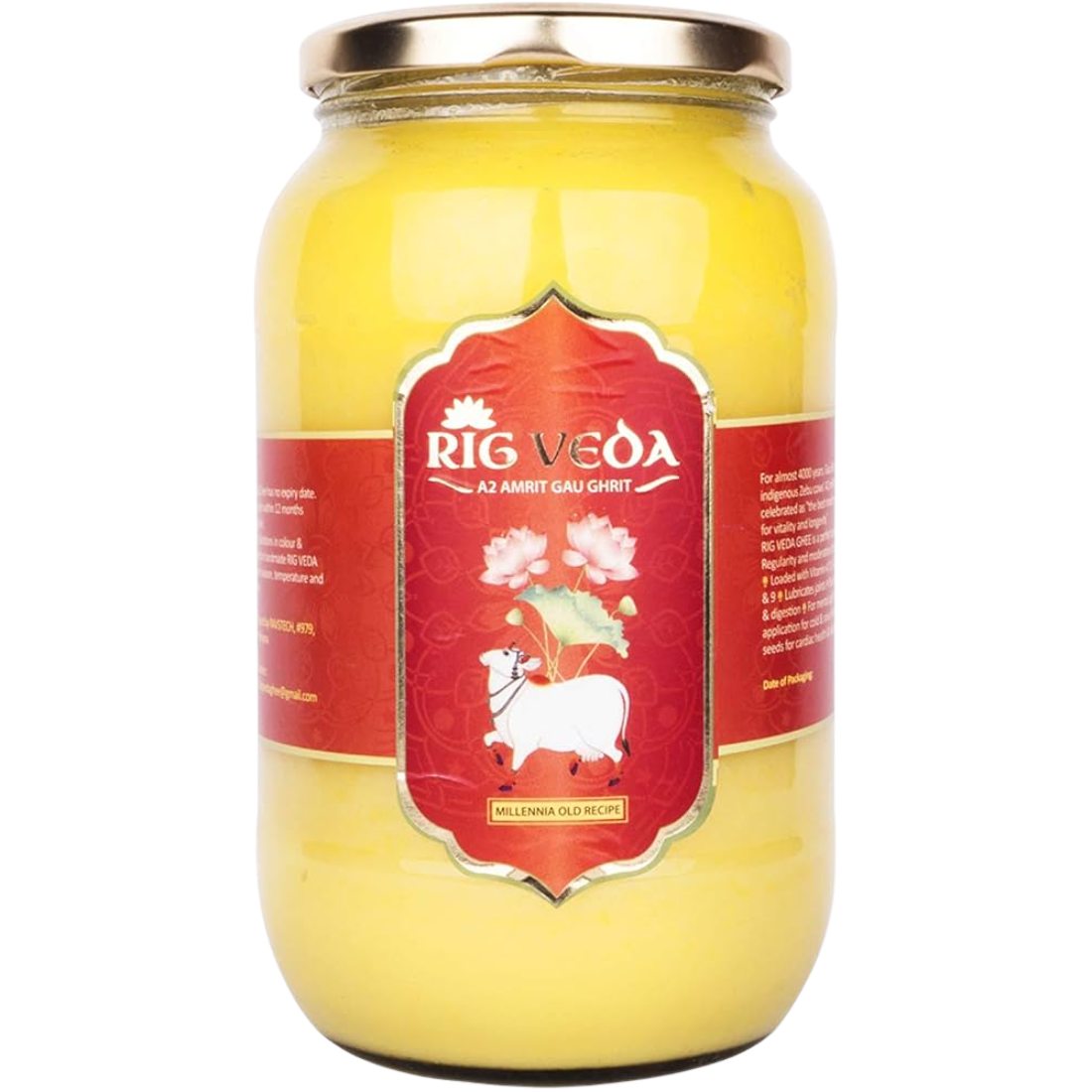 Rig Veda Pure Cow Ghee 1Ltr is made from premium cow’s milk using traditional bilona-style preparation to deliver authentic taste, rich aroma, and natural golden purity. Its smooth texture and nutrient-rich profile make it ideal for daily cooking, deep frying, festive sweets, Ayurvedic use, and pooja rituals. Hygienically processed and securely packed, this ghee maintains freshness, purity, and long-lasting flavor, making it a reliable choice for health-conscious households.
