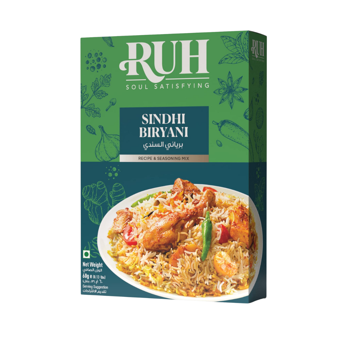 Ruh Sindhi Biryani Masala 60GM is a premium spice blend crafted to create authentic Sindhi-style biryani with rich aroma, vibrant color, and balanced flavor. Perfect for rice and meat dishes, it delivers traditional taste. Hygienically packed to maintain freshness and quality for UAE kitchens.