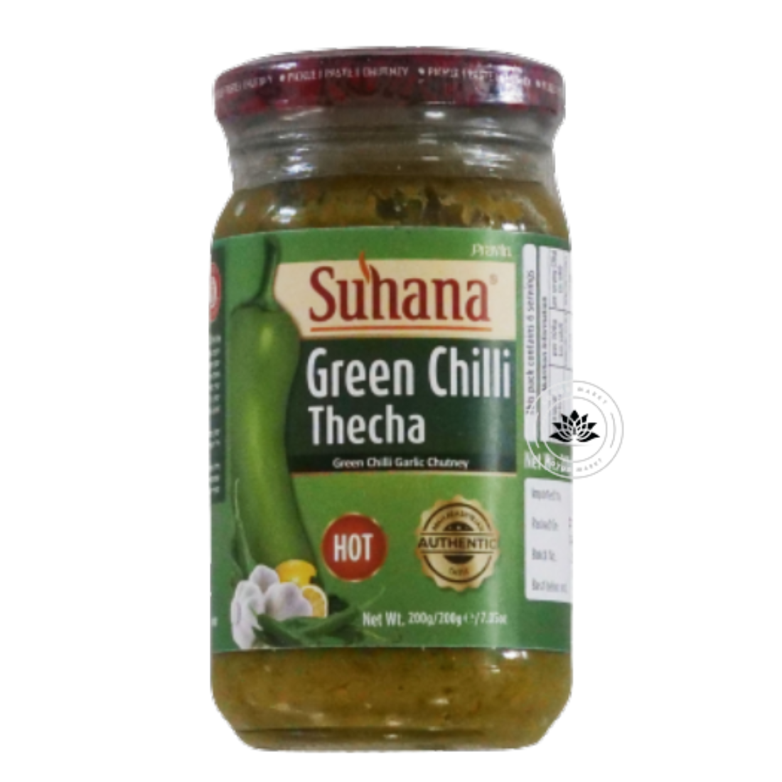 Suhana Green Chilli Thecha 200GM is a spicy and authentic Maharashtrian-style chutney made from fresh green chillies, garlic, and traditional spices. Its bold and fiery flavor adds a perfect kick to meals, snacks, and parathas. Popular in UAE for its premium quality and homemade-style freshness.