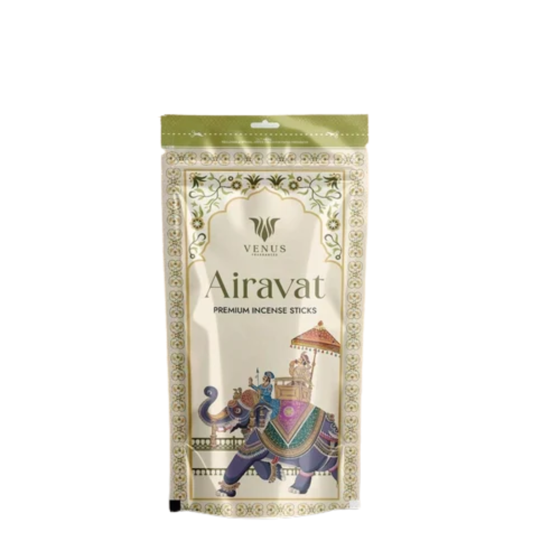 Venus Airavat Premium Incense Stick 120GM offers a majestic and refreshing fragrance inspired by purity and serenity.